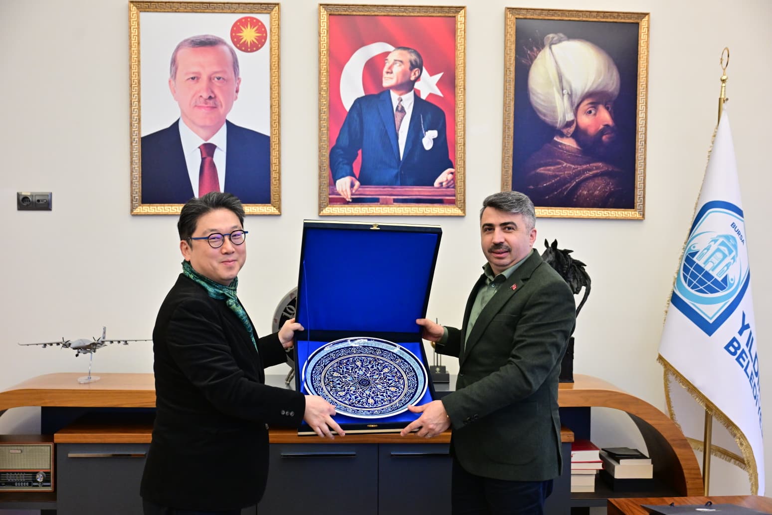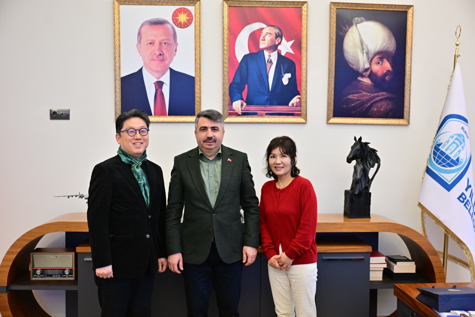 Güney Kore’nin Hankuk Yabancı Diller Üniversitesi Asya Dilleri Fakültesi Başkanı Prof. Dr. Chong-Jin OH ile Türk ve Azeri Dilleri Bölümü Başkanı Prof. Dr. Nana LEE, Bursa Kültür Turizm ve Tanıtma Birliği Başkanı ve Yıldırım Belediye Başkanı Oktay YILMAZ’ı ziyaret etti.